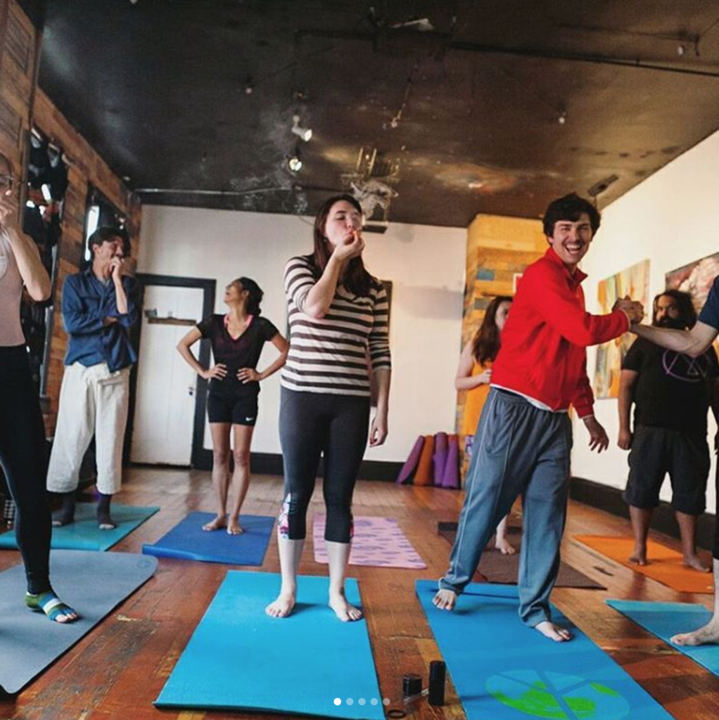 A: The first half an hour is what I call a stoner social. Our classes have joints, vape pens, or edibles and the first half an hour is about consuming with the community. You are free to come as you wish and socialize with your fellow ganja yogis. Then there is a ninety minute practice that is focused on relaxation. Some yoga that is popular now of days is about cultivating fitness or getting a โyoga bodyโ, but this is really an all levels, anyone can do it type yoga that goes back to basics. Ganja yoga uses cannabis to help you move more deeply into basic postures.