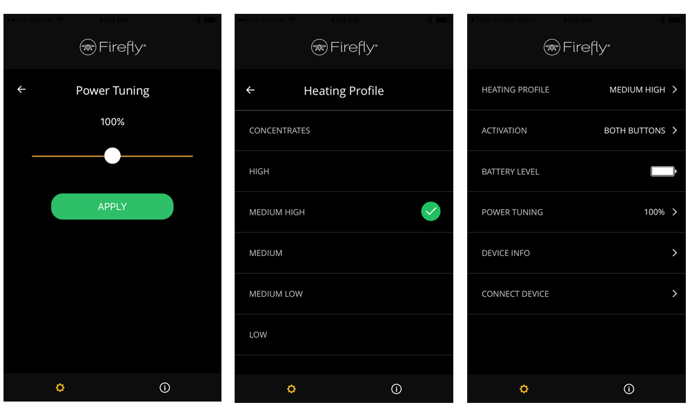 The App also included some simple instructions on use of the Firefly 2, and how to set the options according to my preferences. You can choose between heat profiles, activation settings, concentrate vs flower and other device info. My overall impressions of the App are that its very simple to use, and not overly complicated by unnecessary features (which is great).