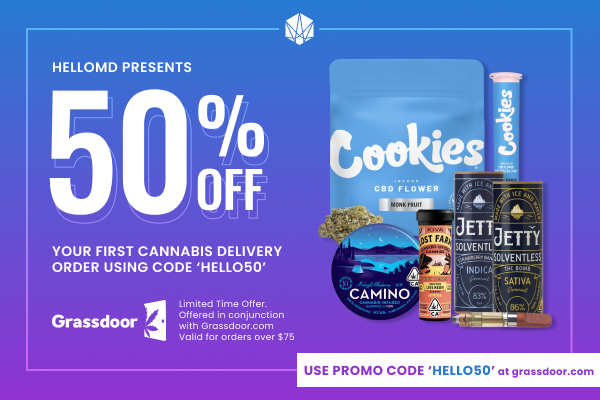 Get 50% OFF your first-time order with weed delivery service GRASSDOOR. Use promo code HELLO50 at checkout; your order must be over $75 to redeem! …